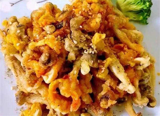 炸蘑菇的时候必须要有耐心,一块一块的裹面糊炸,不然特别容易坨在一起一大块不好吃。小火把蘑菇炸到金黄色之后捞出来装在盘子里面,所有的蘑菇都炸好以后把锅开大火油,温升,到七八成热,微微有些冒烟,然后把炸好的蘑菇倒进去快速复炸一遍,过程大概需要15秒左右,然后关火快速捞出来,装在盘子里面,酥酥脆脆的炸蘑菇就做好了。