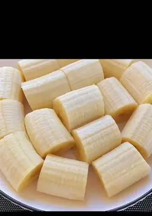将香蕉去皮,并且用纸巾擦干净表面。然后将香蕉切成小段,一般切成三段左右。