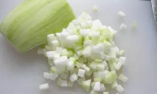 将选择好的爽心瓜皮切成均匀的小块,方便后续的加工处理。注意不要将瓜皮的表层硬壳切掉。