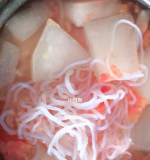 将切好的爽心瓜皮放入开水中煮熟,直到瓜皮变软变透明,但不煮过头。之后捞出过凉水,备用。