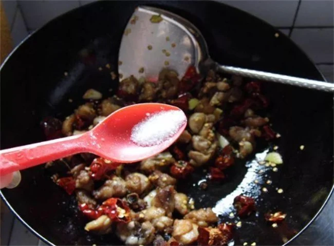 锅里面多加一点油,鸡块下进去,小火慢慢炸,炸到鸡肉颜色变成金黄。捞出来,等油温升高再下进去复炸一次,这样可以让肌肉的口感更加香有嚼劲儿。锅里面留一点底油,然后把辣椒和香料下进去,小火炒香。炒辣椒这一步一定要掌握好火候,必须要有耐心炒出香味的辣椒,把鸡块倒进去,大火快速翻炒。出锅之前加入白糖和孜然,以及适量白芝麻搅拌均匀即可。