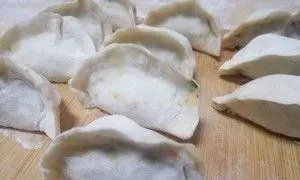2.接下来,可以用手指和拇指沿着饺子皮边缘逐渐捏合,最后形成半月形的饺子。