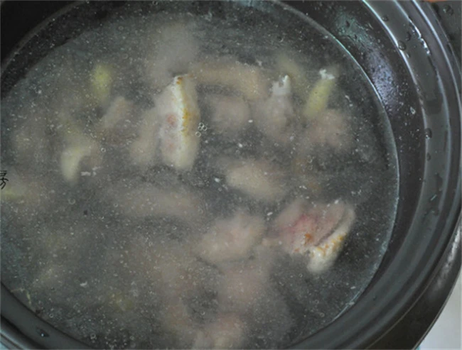 把鸭肉洗干净之后控干水分放进大碗里面,加入适量料酒,腌制半个小时。泡鸭子的这段时间把配料都处理干净,玉米和胡萝卜都切成大块山药去皮之后也切成块了。锅烧热之后少加一点油,油烧热之后把姜片放进去炒香,再把腌好的鸭块倒进去,小火慢慢煸炒,炒到鸭肉里面的水分变少,肉表面变色之后直接放到砂锅里面。加入适量清水,水必须要一次加足。