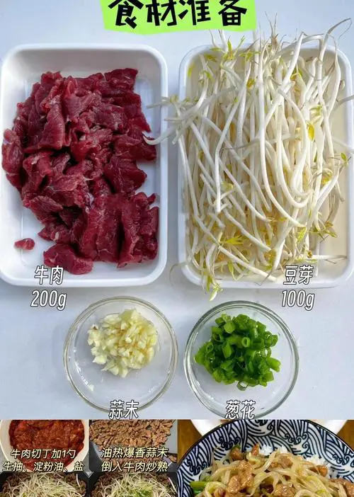 荷豆和牛肉都含有丰富的蛋白质和各种营养成分,而绿豆芽则是一种非常营养的蔬菜。