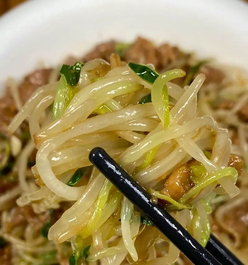 最后加入准备好的绿豆芽,继续进行翻炒,绿豆芽要尽量不被过分烹调,以保留清爽口感。
