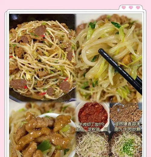 自发绿豆芽炒荷豆牛肉是一道美味又营养的菜品,荷豆肉质细嫩,绿豆芽清爽可口,搭配起来十分协调。这道菜品营养丰富,不仅含有丰富的蛋白质和维生素,同时荷豆和绿豆芽都具有降血脂、促进肠胃健康等功效,是健康餐桌的不二之选。下面,我们就来详细介绍一下如何制作这道美食。