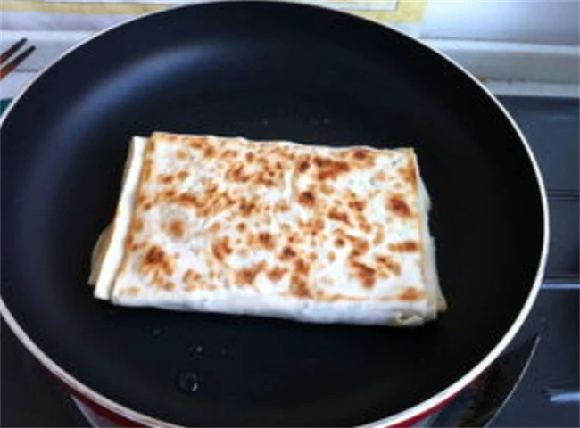 然后把型号的面团拿出来直接改成长条的句子,把炸好的油酥抹在面皮儿上面,然后再撒入适量的小葱花,从一头卷起,一边卷一边拉伸,让它能够变得更薄一些。面壁卷好之后放在盆里面再次松弛。松弛好的面皮轻轻按压成,饼也可以用擀面杖稍微擀一下。锅里面加入一点食用油把擀好的饼皮放进去,中小火烙至两面金黄,熟透即可。