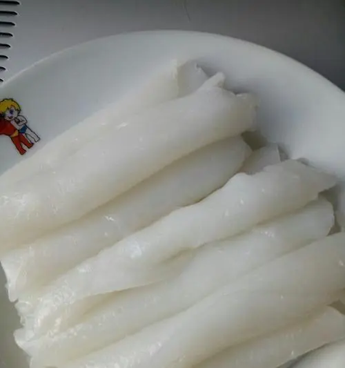 将晾干的粉皮放入开水中煮熟,煮的时间大约需要5-8分钟左右。