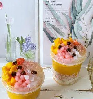 在奶昔制作完成后,加入适量的椰果,增加口感层次和颜值。