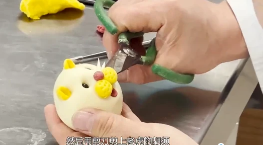 一块面团,辅以简单的工具,巧手制作便可轻松“化身”各类带有美好寓意的动物、花草。“用手触摸面团顶部感觉有黏性却不粘手,离开时手指痕迹会很快消失。”林荣涛向大众网·海报新闻记者展示道,为达到最佳口感,制作过程中的每一步都需要严格把控。发面、和面、揉面、印、捏、镶、滚……历经十几道工序,一只穿花衣、扮花脸的“小老虎”活灵活现地出现在记者眼前。“小老虎”身上的绿色是菠菜汁染成,紫色是紫薯,橙色是胡萝卜,黄色是南瓜……不同水果、蔬菜汁为花饽饽着色,既美观又营养健康。(记者 杨小禾 李钊铭 曲雯雯)