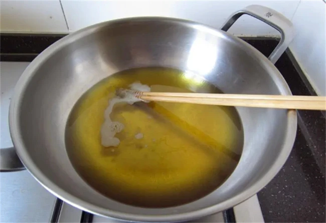对于厨房新手而言掌握炒菜的油温确实是一件比较难的事。而想要炒出一盘色香味俱全的菜油温,却是一个非常关键的因素。今天就教大家用一根筷子来分辨油温的高低。先把锅洗干净,放在火上把锅烧干,然后再加入适量食用油试油温的时候,一定要多加一点油,加少了油,没什么太大的感觉。拿一根筷子1~2成的油温,基本上就等于冷油油温在90度一下把筷子放到油里面,没有任何动静。这个温度比较适合炸花生米,腰果,杏仁等。