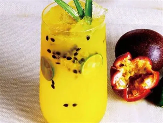 再来做一个百香果汁,其实做法事特别简单的,把百香果对半切开,挖出果肉,放进绿网里面,绿掉籽留果汁。如果喜欢吃冰凉的口感,可以把百香果汁放在冰箱里面冷冻,冻成冰块。然后在果汁机里面加入。适量养乐多酸奶,把冻好的百香果放在料理机里面,一通搅打。里面加入自己喜欢的水果,或者可以把水果一起放在榨汁机里面打成汁。